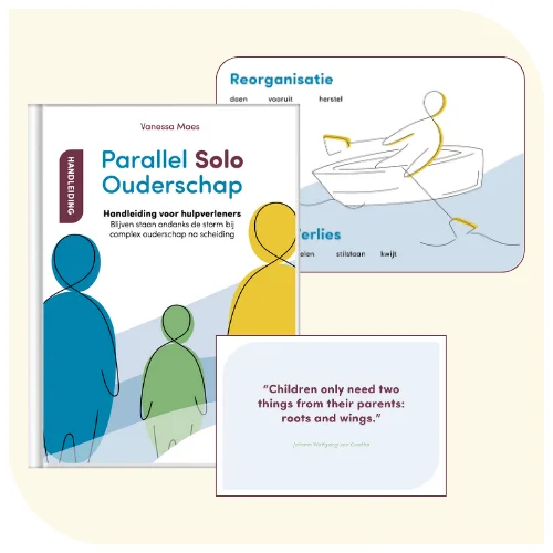 De Toolbox bestaat uit 23 luxe werkkaarten die de belangrijkste begrippen uit Parallel Solo Ouderschap uitbeelden en 25 inspirerende kaartjes met quotes. Deze Toolbox behoort tot het lesmateriaal bij de trainingen van IPSO+, je ontvangt deze standaard bij deelname aan de Basistraining – Werken met ouders van Parallel Solo Ouderschap.